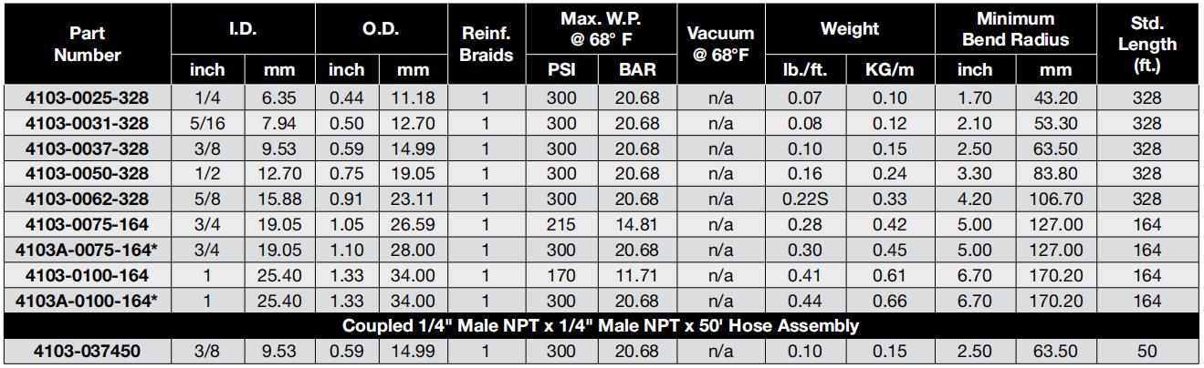 CONSTRUCTION: Tube and cover are TPR (NBR/PVC), smooth, high oil resistance, ARPM Class A. Cover is red. Reinforcement is one braid, synthetic material.