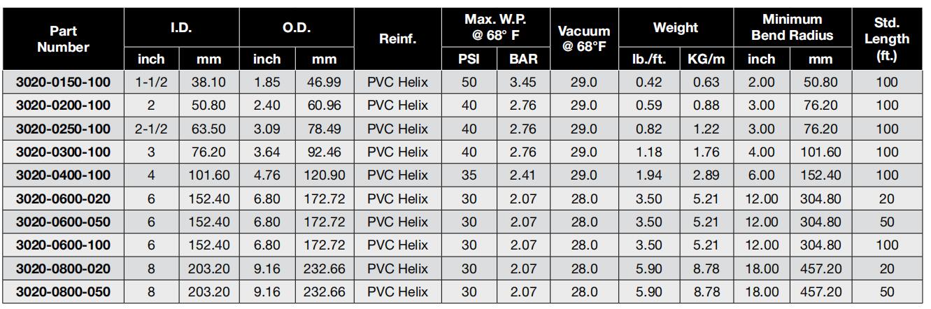 CONSTRUCTION:Polyurethane abrasion resistant liner with a PVC cover and a sturdy clockwise PVC helix.