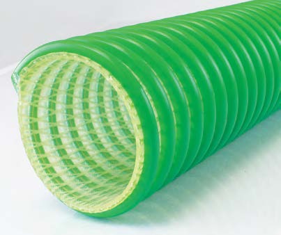 CONSTRUCTION:Polyurethane tube, smooth bore with embedded SΩ ground wire in the hose wall with a sturdy clockwise PVC helix, one braid of high tensile polyester yarn reinforcement.