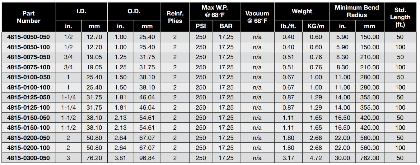 BRANDING:Jason logo 4815 EPDM WP 250 PSI 17.25 BAR – DRAIN AFTER USE.Reverse white Mylar longitudinal stripe.